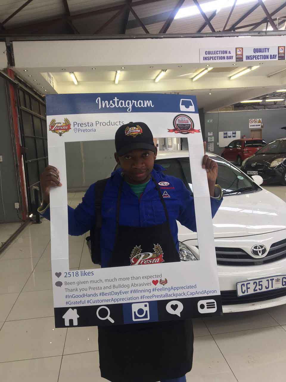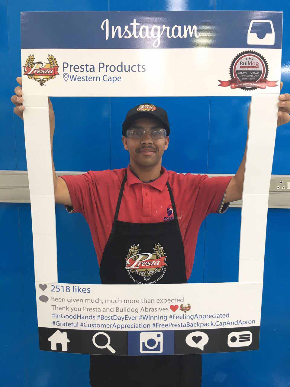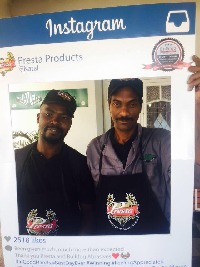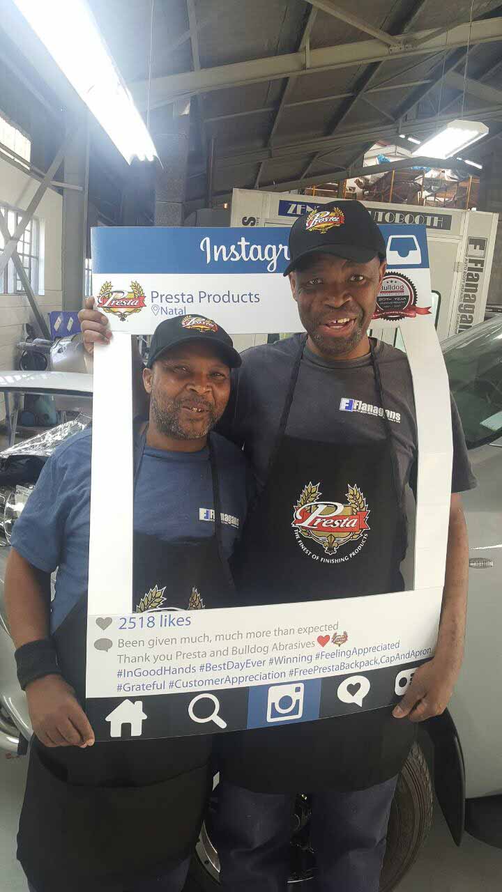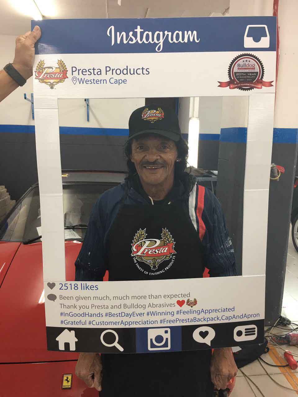 To celebrate the “20-year partnership” between the two companies – Bulldog Abrasives and Presta Products implemented an initiative where Bulldog’s top sales and technical representatives took to the road to personally say “Thank you” to each panel shop who proudly chooses to use Presta Products in their daily polishing processes. They also gave away much appreciated back-packs, caps and aprons to the hard-working polishers who actually use the product in the shops.