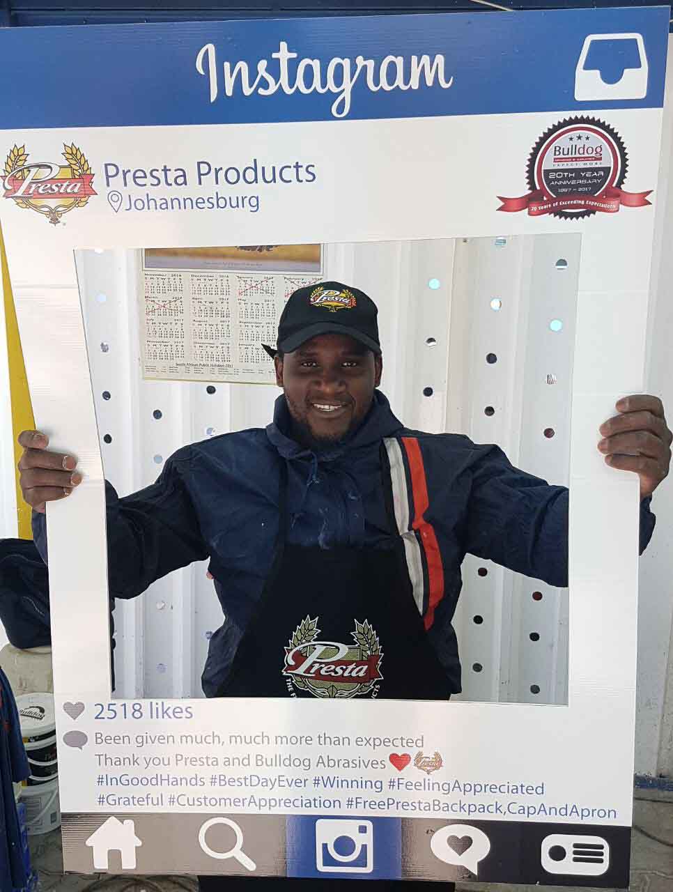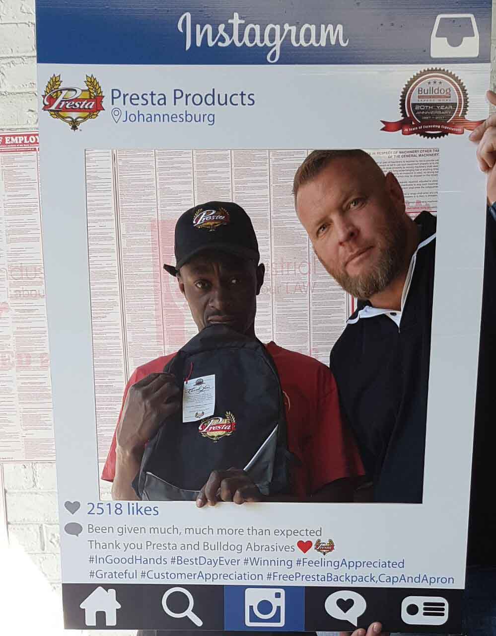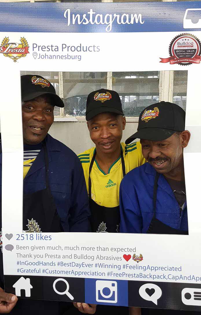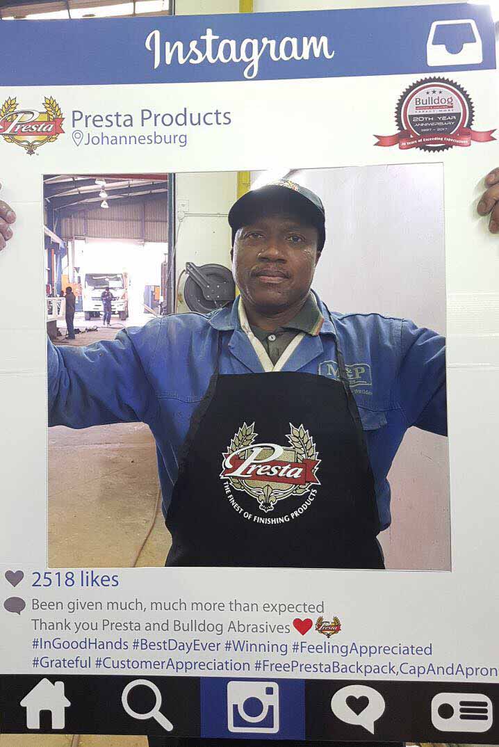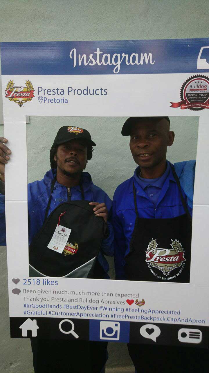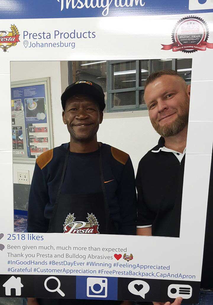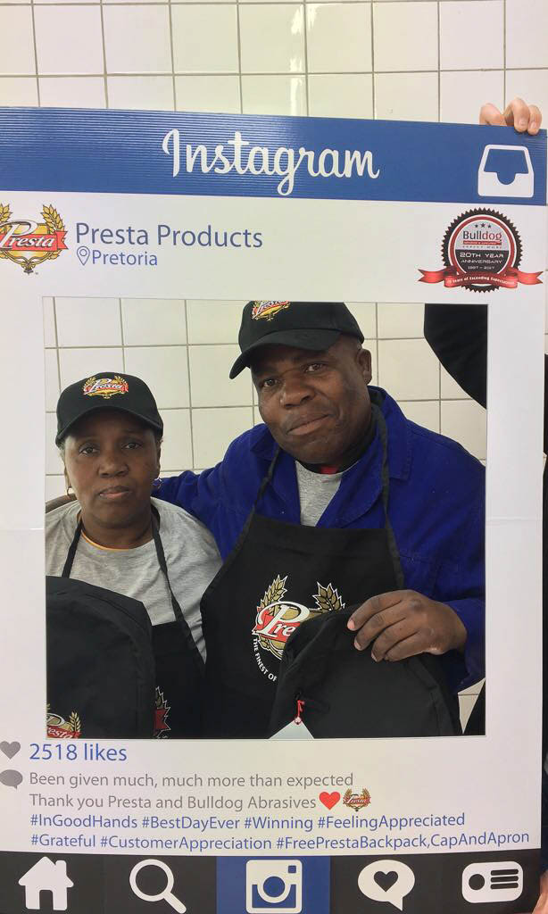 Bulldog Abrasives have been a loyal and proud distributor of Presta Products since the beginning of Bulldog’s journey in 1997 – introducing and supplying their premuim products to Sub-Saharan Africa. Twenty years later Presta’s unique and innovative products have gone from strength-to-strength, and so has the relationship between Bulldog and Presta.